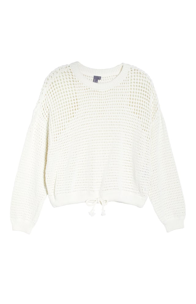 A breathable open stitch elevates the performance-ready comfort of an easy-fitting pullover finished with an adjustable drawstring at the hem.